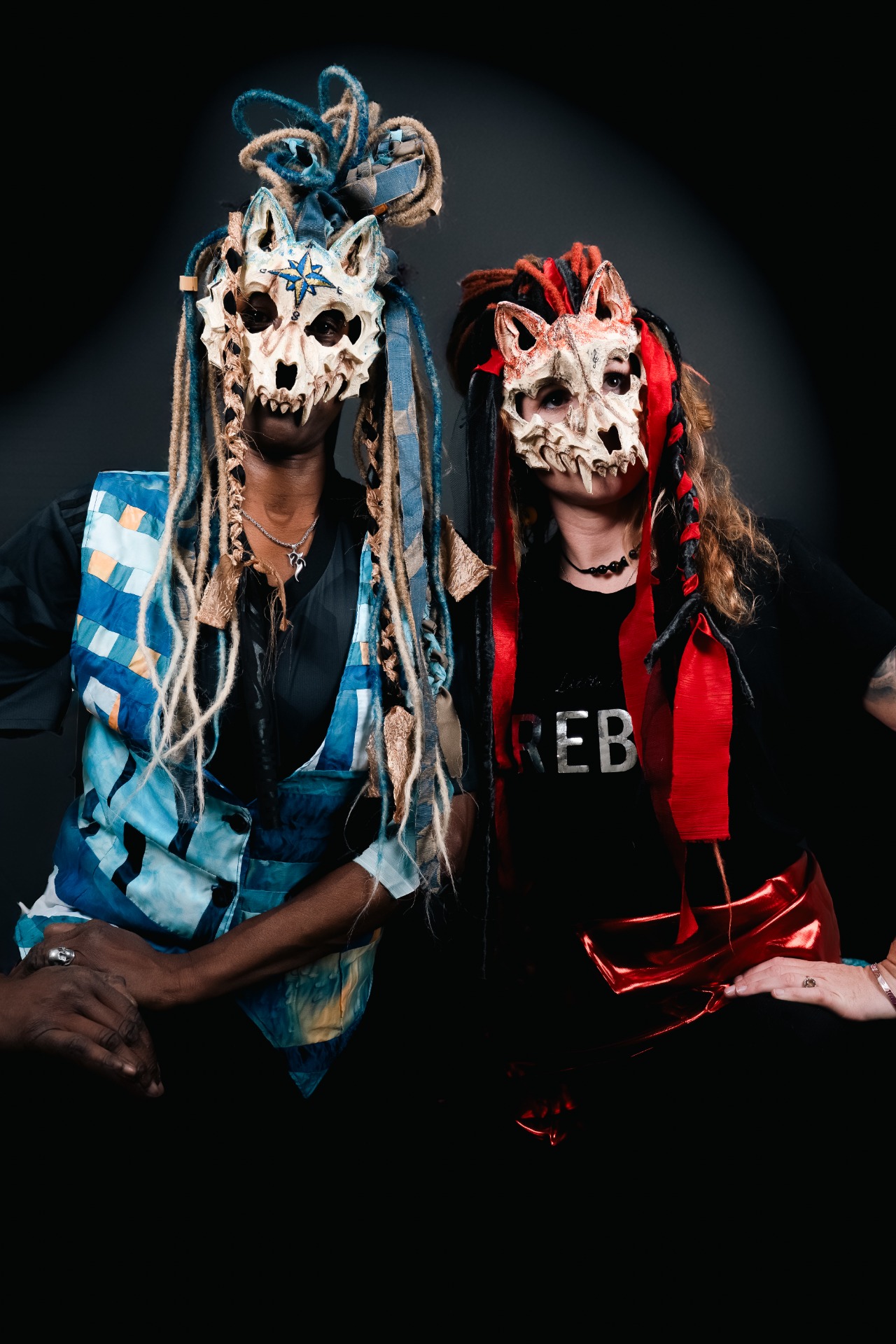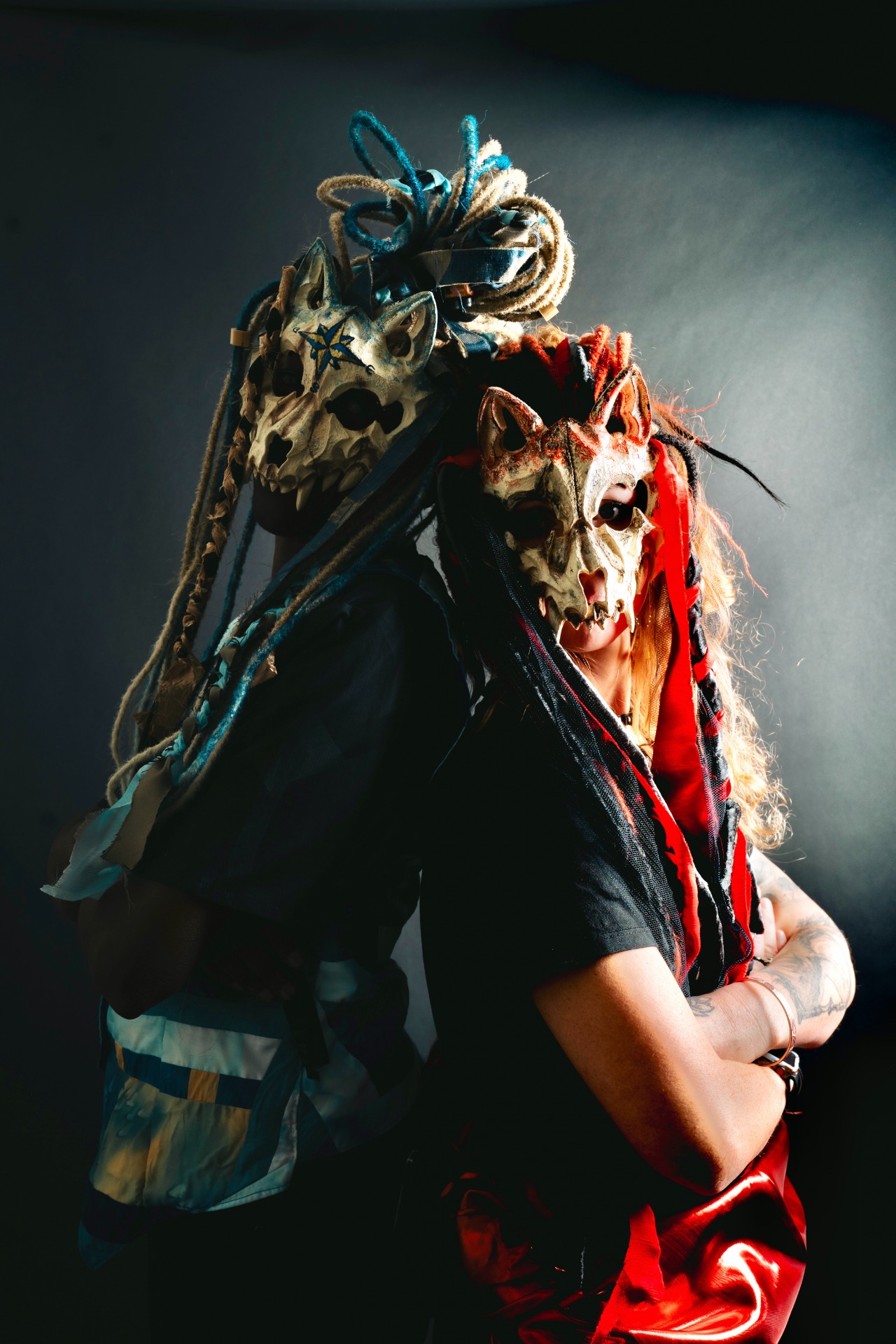 Notre travail s'inspire de mythes, de rites et d'esthétiques primitives, tout en conservant une approche profondément artisanale. Chaque masque est pensé pour raconter une histoire : cicatrices, reliefs, tresses, étoffes et patines contribuent à créer une identité singulière, entre art, costume et objet rituel.